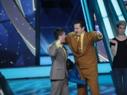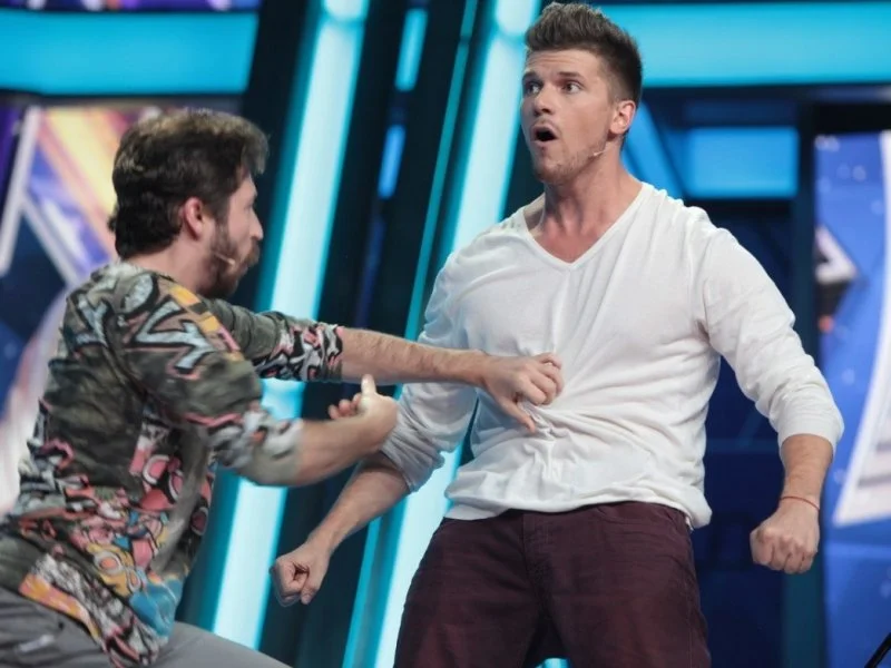Юмор рождается на сцене, которая, кажется, сама решает, кто достоин на ней стоять. Если выступление участнику не удается, пол под его ногами наклоняется вперед. Сначала немного, но вот еще одна шутка не прошла, и угол становится круче, а после очередной неудачи голова занята совсем не смешными мыслями – удержаться бы. И это не единственный технический сюрприз, который ждет претендентов на победу: за плохие шутки участники получают по пятой точке специальной механической «лапой».